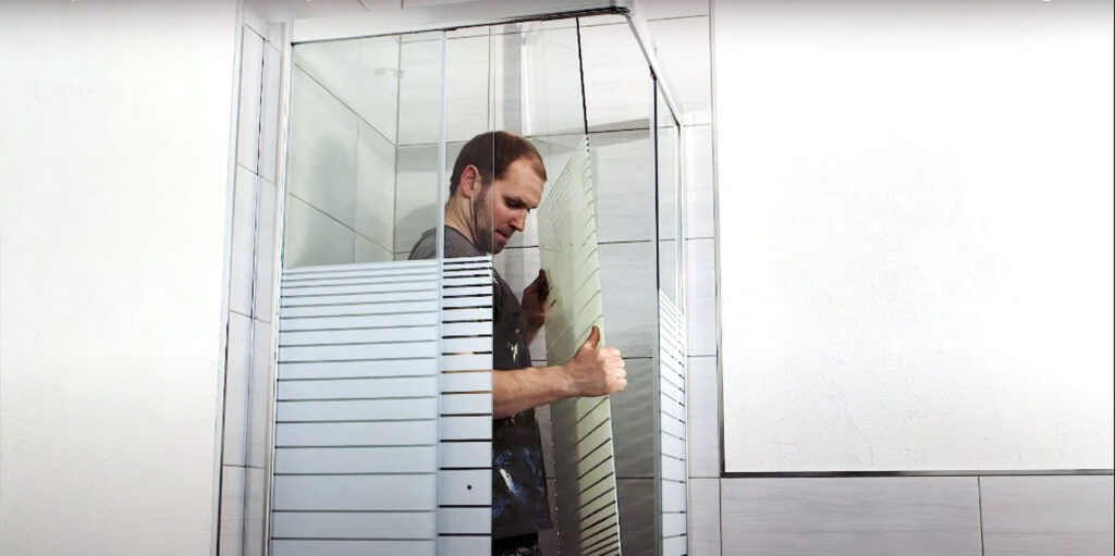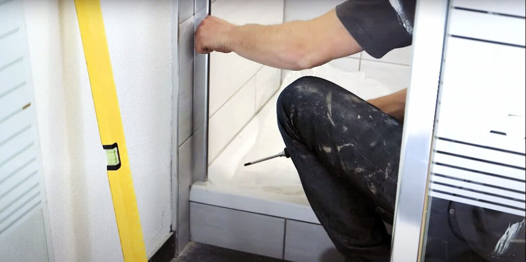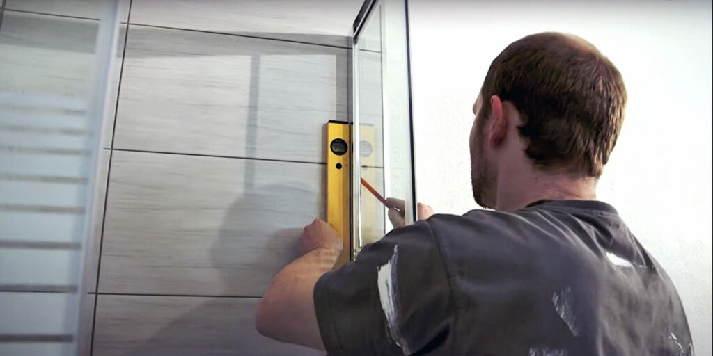 - Posledným krokom bude poskladanie sprchovej kabíny podľa návodu výrobcu. Nanečisto ju položte na sprchovú vaničku, vyrovnajte rám tak, aby mal rovnomerný odstup a vyznačte polohu sprchového kúta pozdĺž vonkajších okrajov na obe steny