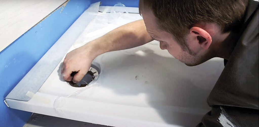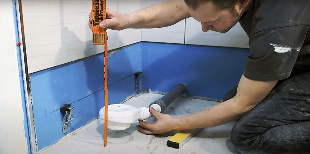 - Podľa návodu zostavte sprchový odtok a spojte ho so stenovým prípojom. „Pre spojenie rúrky naneste trochu maziva na koniec rúry. Zdvihnite odtok na požadovanú výšku pre pripojenie k otvoru na odtok vaničky a skontrolujte spád. Ten musí byť najmenej 2 %. Rúrka s dĺžkou 50 cm podľa toho bude vyžadovať spád s veľkosťou 1 cm,“ vysvetľuje odborníčka