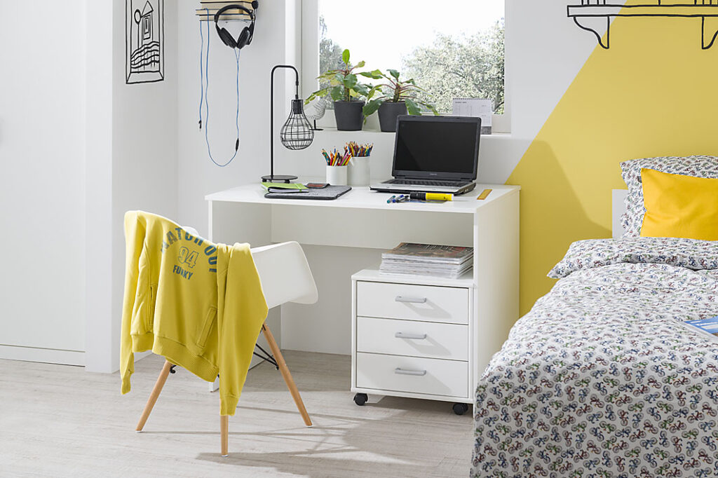 Keď hovoríme o mieste na učenie, myslíme tým kvalitný, stabilný a dostatočne veľký písací stôl, pohodlnú stoličku s dostatočnou oporou chrbtice a úložné priestory na učebnice, zošity a ostatné školské potreby. Písací stôl pre školáka by mal mať hĺbku minimálne 60 cm a šírku 80 cm. Stôl môže byť rohový, rovný, klasický alebo rastúci a polohovateľný. Treba myslieť na to, že pre pohodlné a bezpečné vstávanie zo stoličky musí byť hrana stola vzdialená od inej pevnej prekážky minimálne 1 meter. Dôležitý je aj priestor pod stolom. Mal by byť dostatočné veľký na to, aby ste pod stôl zmestili praktický zásuvkový kontajner na kolieskach a prípadne aj odpadkový kôš.