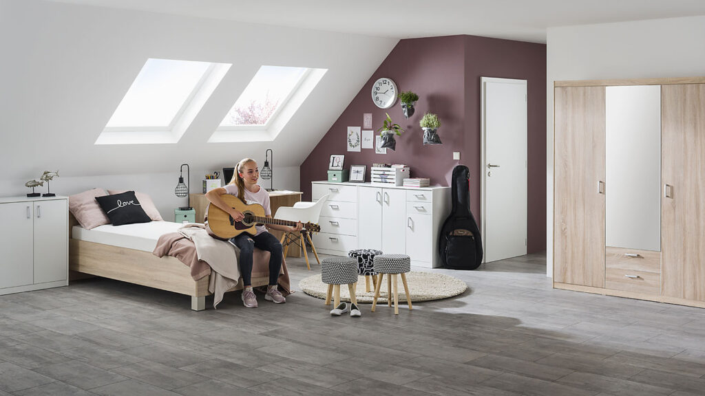 Dostatok úložného priestoru je dôležitý aj v detskej izbe. No pridáva sa aj jednoduchosť odkladania. Pri predškolákoch a žiakoch prvého stupňa sú výborným riešením úložné boxy a krabice s uzáverom. Deti si do nich samé ľahko odložia hračky a aj pri sobotnom upratovaní sú ľahko udržiavateľné. Využiť môžete aj priestor pod posteľou. Pokiaľ ste kúpili posteľ so zabudovaným úložným priestorom, viete o čom hovoríme. Ale aj ak pod posteľou vášho dieťaťa nie je odkladací priestor, žiadny problém. Okrem úložných boxov sú riešením aj zásuvky na kolieskach. Deti nad písacím stolom alebo v jeho blízkosti ocenia aj nástenné police s rôznou hĺbkou – napríklad na učebnice, knihy, ale aj na hračky či „zberateľské úlovky“ z prírody. Pre deti sú ľahko dostupné aj zásuvkové komody a vešiaky na dverách či pri dverách, kam si môžu zavesiť bundu, mikinu, školskú či športovú tašku. Samostatnou témou sú šatníkové skrine. Praktický šatník by mal zodpovedať jednak priestoru detskej izby a najmä potrebám vašich detí. Veľmi populárne a zároveň praktické sú vnútorné zásuvky v skriniach, ktoré sú pre deti ľahko dostupné a prehľadné. V moderných interiéroch sa stále častejšie stretávame s posuvnými šatníkovými dverami, ktoré šetria priestor.