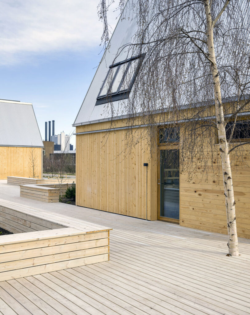 V areáli na okraji mesta realizovala spoločnosť VELUX v spolupráci s architektonickým ateliérom EFFEKT Architects a spoločnosťami Artelia a Enemaerke & Petersen sedem objektov z dreva a ďalších trvalo udržateľných materiálov. Päť z nich slúži ako priestory pre výstavy, prezentácie, debaty a stretávania, ďalšie dva sú rodinné domy vybavené nábytkom. Jeden bol realizovaný ako drevostavba so stĺpikovou konštrukciou, druhý je z masívnych CLT panelov. U oboch domov sa podarilo znížiť uhlíkovú stopu na hodnotu 3,8 kg/m2 za rok, čo je trikrát menej, než produkuje priemerný dánsky rodinný dom (jeho uhlíková stopa robí viac ako 11 kg CO2 za rok). Životný cyklus domu je plánovaný na 50 rokov, výpočet uhlíkovej stopy zahŕňa produkciu CO2 v celom životnom cykle – počnúc ťažbou a spracovaním dreva a ďalších použitých materiálov cez dopravu, stavbu domu, prevádzku domácnosti až po renováciu domu a jeho demontáž po 50 rokoch.