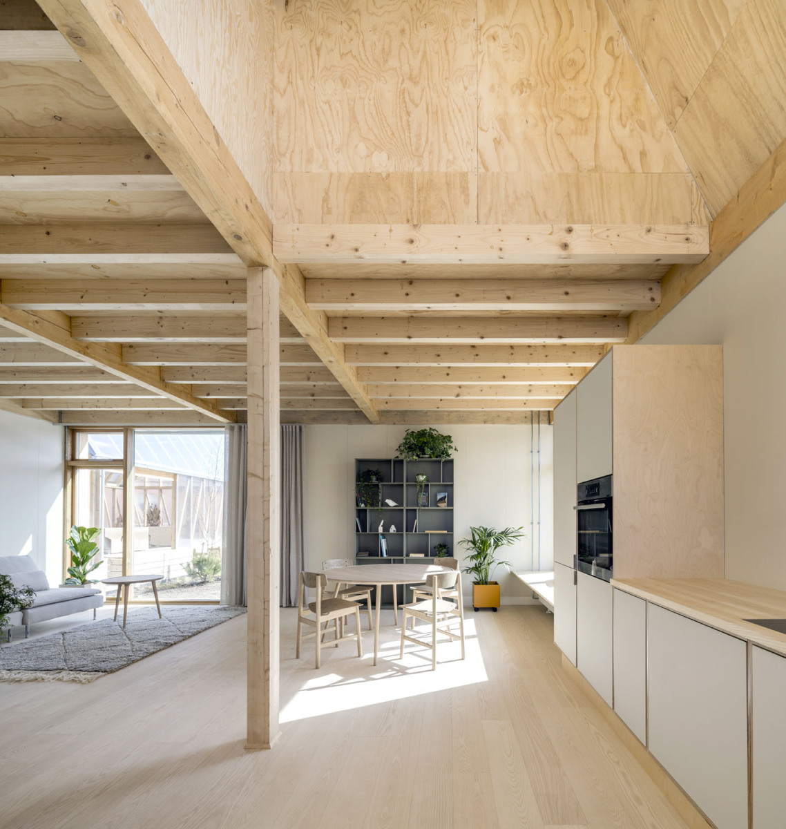 Úsporný kompaktný tvar založený na štvorcovom pôdoryse a strmej streche sa sklonom 60° je v Škandinávii tradičný a umožňuje vstavanie dvoch podkrovných podlaží. Na prízemí sa nachádza spoločná obývacia časť, technická miestnosť, kúpeľňa a otvorené schodisko, na poschodí dve izby a hore pod hrebeňom strechy ďalšie spálne. Dom je vybavený tepelným čerpadlom, rekuperáciou, solárnym ohrevom úžitkovej vody a mechanickým vetraním – strešné okná sa otvárajú pomocou diaľkovo riadeného ovládania. Vytvoriť príjemnú vnútornú klímu nevyžadovalo žiadnu zložitú vzduchotechniku ani inú nákladnú technológiu, architekti múdro využili princípy vychádzajúce z prírody. Denné osvetlenie a vetranie zaisťuje premyslená zostava fasádnych a strešných okien. Strešné okná sú mimoriadne efektívne, a navyše nimi prichádza príjemné rozptýlené horné svetlo, takže interiéry pôsobia veľmi vzdušne. Prirodzené prevetranie zaisťuje tzv. komínový efekt – v otvorenom priestore vzduch voľne stúpa z prízemia nahor, prechádza naprieč domom a strešnými oknami je odvádzaný do exteriéru. Automatický systém otvára a zatvára strešné okná podľa potreby, na základe vyhodnotenia teploty vzduchu, vlhkosti a koncentrácia CO2 v interiéri. Je tu teda stále príjemná teplota a čerstvý vzduch, prevoňaný drevom bez toho, aby dochádzalo k plytvaniu energiou. Domy Living Places spĺňajú najprísnejšie parametre v kategórii Aktívny dom. Projekt bol realizovaný pod vedením architektky Lone Feifer, riaditeľky odboru Udržateľné budovy spoločnosti VELUX, členky Kráľovskej dánskej akadémie architektúry a Dánskeho zväzu architektov. Za jeho najväčšiu hodnotu považuje návrat k tomu, čo bolo po stáročia pre našich predkov prirodzené – rešpektovať okolité prostredie a využívať zákony prírody. Projekt dokazuje, že pohodlné bývanie 21. storočia nemusí znamenať plytvanie peniazmi ani priestorom a ani nenávratné poškodzovanie prírody.