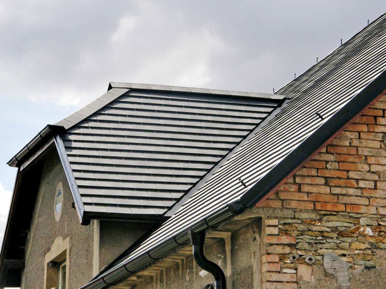 Nevšednou krytinou je dnes už aj falcovaný či trapézový plech. Kedysi klasické rovné plechy dnes pôsobia oveľa zaujímavejšie. Vďaka širokej škále farebnosti a konečnej úprave (vzhľad dreva) získa strecha originálny štýl. Marcel Porvich, konateľ spoločnosti Roofing, s. r. o., prezradil, ako u nich pracujú s touto krytinou: „Tam, kde sa nedá využiť pokrytie škridlou alebo škridloplechom, nastupuje klasická klampiarčina. U nás 90 % striech pokrývame falcovanou krytinou,“ objasnil. Krytina môže byť z rôznych materiálov ako meď, hliník, zinok. Medená je drahá, používa sa najmä na pokrytie kostolných veží. „Na pokrytie rodinných domov je využiteľná pozinkovaná alebo hliníková krytina. Farebnosti sa medze nekladú, záleží na prianí zákazníka. Dnes najviac letí antracit, tmavošedá alebo hnedá farba,“ dodal Marcel Porvich. Približná cena plechovej strešnej krytiny je 15 €/m2.