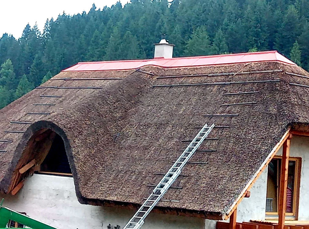 Na použitie slamenej krytiny je ideálna sedlová strecha s min. sklonom 45º. Táto krytina je náročná na ošetrovanie, kvôli zamedzeniu škodcov aj poveternostným vplyvom. Jej veľkou výhodou je cenová dostupnosť. Za pokrytie slamenej strechy zaplatíte približne od 25 €/m2.