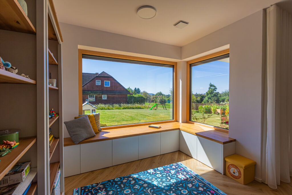 Moja žena chcela rohové okno, čo z nejakých konštrukčných dôvodov úplne neklaplo, ale máme aspoň presklené rohové sedenie pri okne. A ja som chcel dielňu.
