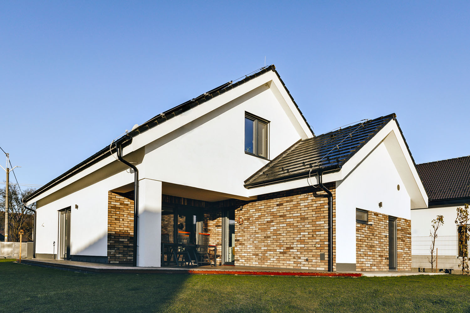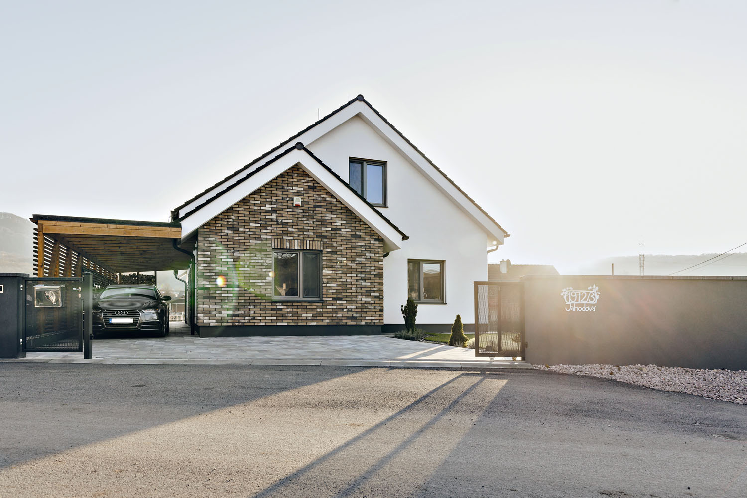 „V stavebníctve sa profesionálne pohybujem a o kúzle tejto lokality som dobre vedel,“ hovorí majiteľ domu pán Marek. Obaja manželia pochádzajú z vidieckeho prostredia, a tak mala rodina veľmi rýchlo jasno v tom, že byt v Prešove, kde bývali od začiatku manželstva, nebude ich konečnou stanicou. A keď našli to správne miesto pre nový domov, mohol sa otec a manžel pustiť do projektu. Stavba je prispôsobená súčasnej uličnej zástavbe a orientácii voči svetovým stranám, to bol základ celkovej koncepcie nového domu. Pán Marek pochádza zo stavbárskej rodiny, stavbárom je aj otec jeho manželky. Takže dohľad si vzal na starosť investor, realizáciu hrubej stavby stavebná firma jeho bratranca, ktorá dlhodobo pracuje s materiálmi Ytong. Jednotlivé profesie si potom pán Marek vyberal z firiem, s ktorými mal dobré skúsenosti zo svojej profesie.