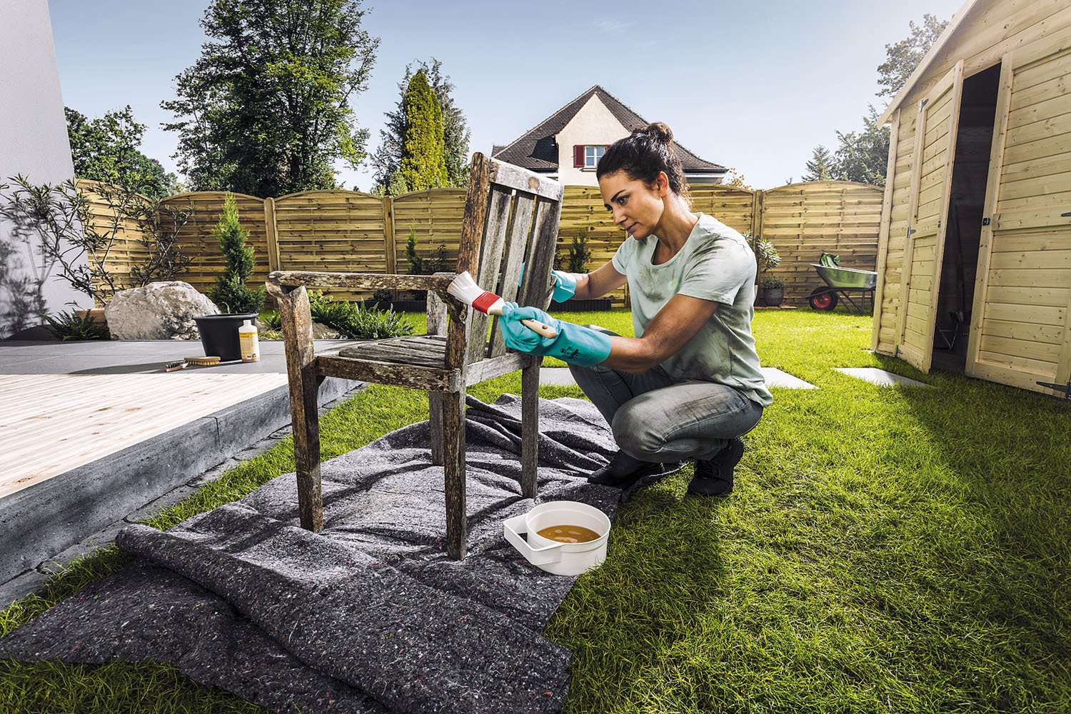 Ak drevené povrchy vykazujú známky poškodenia bude potrebné ich ošetriť. Začnite dôkladným očistením povrchu od starých náterov a nečistôt. Na vyhladenie mechanicky poškodeného povrchu použite brúsny papier a pracujte v smere kresby dreva. Začnite s brúsnym papierom s hrubšou zrnitosťou. Keď je povrch rovný, postupne prejdite na jemnejšie zrnitosti, aby ste dosiahli leštený povrch. Mále poškodenia, ako sú napríklad trhliny či diery v dreve môžete jednoducho opraviť vhodným výplňovým materiálom. V prípade napadnutia škodcami bude prvým krokom identifikácia škodcu a výber správneho ošetrenia. Ak je stupeň napadnutia príliš veľký, na rad nastupuje píla. „Poškodené časti treba odstrániť alebo poriadne spevniť. Keď si na ošetrenie netrúfate, vždy je vhodné obrátiť sa na špecialistov, ktorí vám ochotne poradia a profesionálne odstránia a nahradia poškodené časti,“ radí Monika Linghartová. Čo však v prípade, že drevo poškodené nie je, ale stratilo svoju žiarivú farbu? „Ak drevo pôsobením slnka iba vybledlo, môžete obnoviť jeho farbu použitím lazúry na drevo alebo tónovaného oleja. Lazúry sú vhodné predovšetkým na mäkké druhy dreva a oleje na tie tvrdé. Vyberte si odtieň, ktorý zodpovedá pôvodnej farbe dreva alebo ju zvýrazňuje. Pri olejoch vyberajte tónované produkty, pretože priehľadný olej neposkytuje pre exteriérové drevo dostatočnú ochranu pred UV. Zvolený produkt rovnomerne naneste štetcom alebo handričkou podľa odporúčaní výrobcu a nechajte ho dôkladne zaschnúť,“ dodáva odborníčka z Hornbachu.
