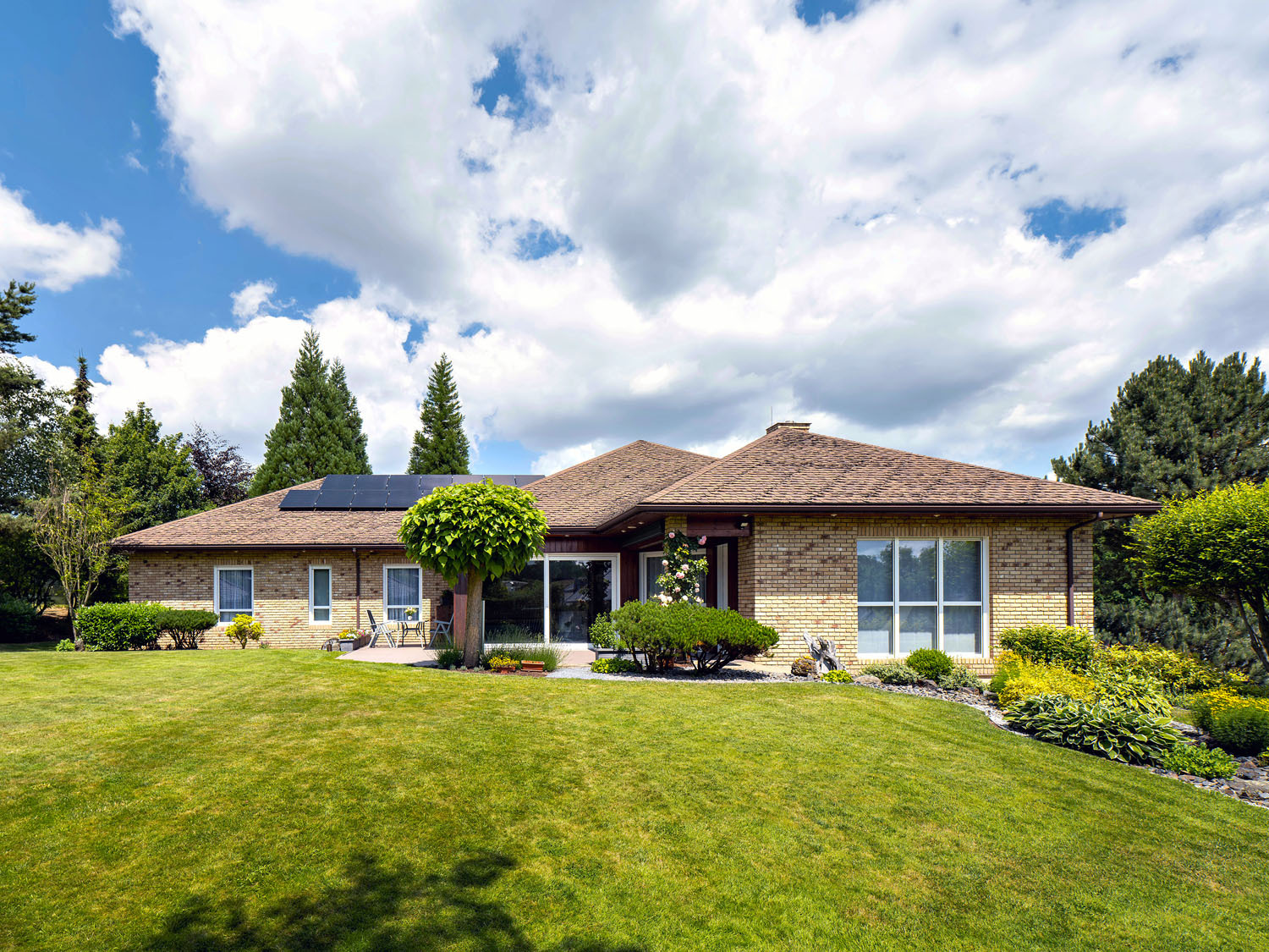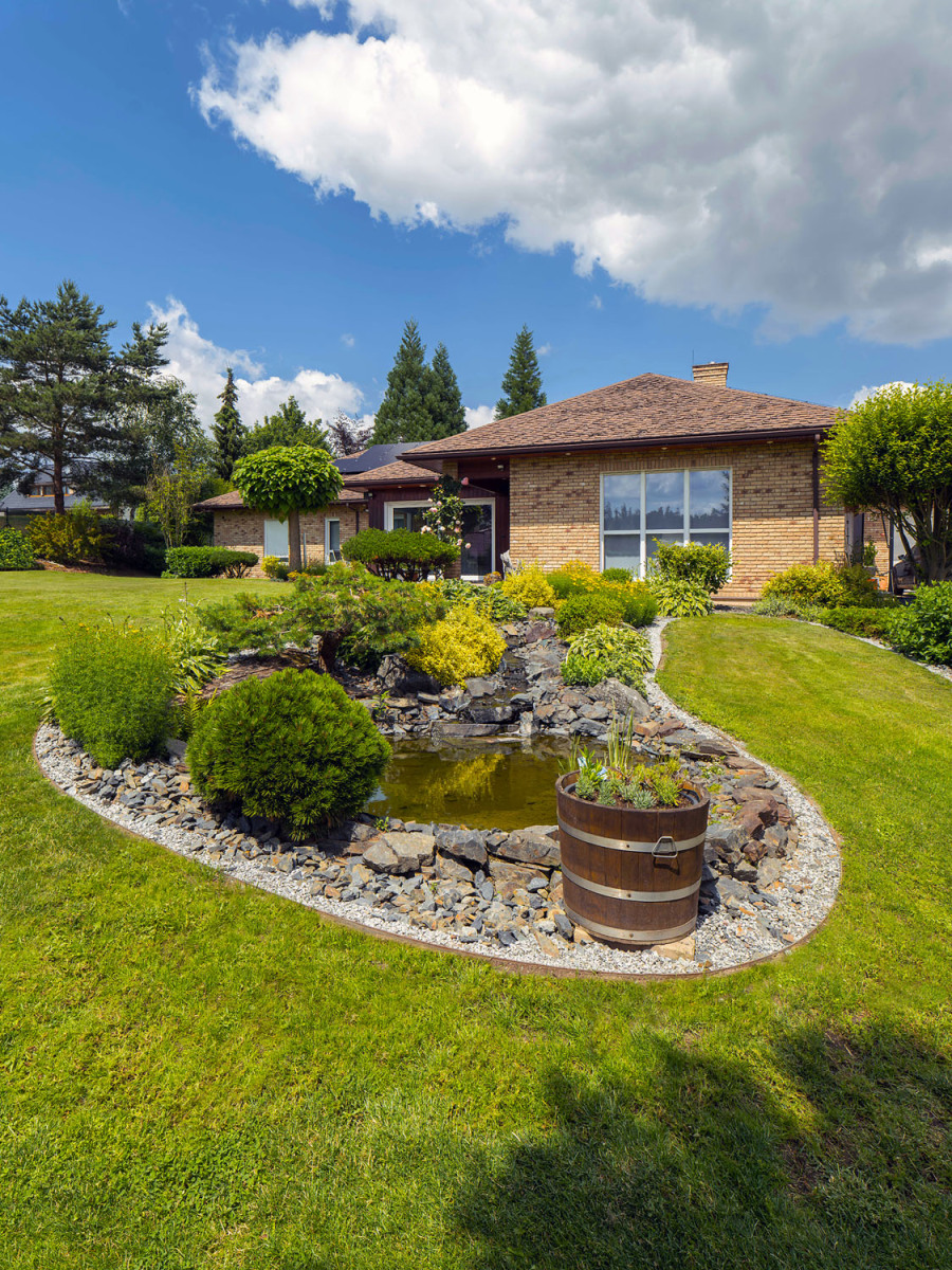 Dispozične ide o nepodpivničený bungalov 6 + kk s veľkorysou obytnou plochou 320 m2. Vykurovanie (v celom dome je rozvedená podlahovka) a ohrev teplej vody pre domácnosť i vnútorný bazén so slanou vodou má na starosti tepelné čerpadlo a fotovoltika od firmy TnG-Air. „Aj po toľkých rokoch tento dom funguje neuveriteľne. V lete je tu i bez klimatizácie relatívne chladno, v zime stačí málo a je tu krásne teplo. Vnútorný bazén je dobre odvetrávaný. Vďaka tomu, že je v ňom slaná voda, nie je bazénová chémia v dome cítiť. Mrzí ma azda iba to, že nemáme pivnicu a povalu, ale človek zasa aspoň nehromadí toľko vecí,“ hovorí s úsmevom Gábina. „Jediné, čo tu po tých 19-tich rokoch už bolo potrebné naozaj vymeniť, bola drevená terasa. Vieme, aká bola jej údržba náročná, preto sme siahli po bezúdržbovej kompozitnej terase Twinson. A dobre sme urobili. Vonku totiž trávime celé leto, terasa je vlastne našou letnou obývacou izbou a žiadne brúsenie alebo natieranie nás už teraz nečaká. Žiadne triesky a tiež žiadne škvrny. Všetko sa dá opláchnuť záhradnou hadicou alebo zotrieť handrou,“ pochvaľuje si Gabriela.