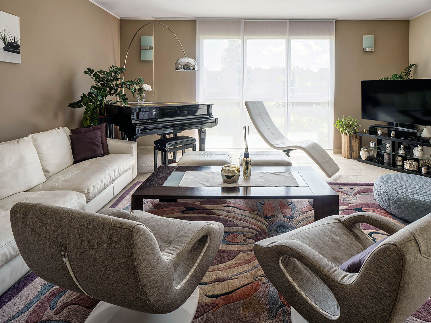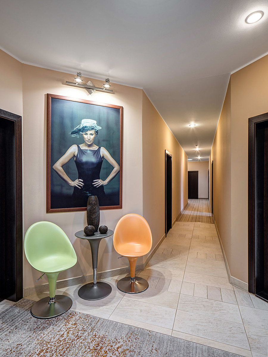 „S interiérom nám pred nasťahovaním pomáhal architekt Mojmír Raný. Dali sme teda dosť na jeho odporúčania. Previesť vonkajšie tehlové obloženie aj do interiéru bol jeho nápad. Skombinovali sme ho tu s ďalšími materiálmi vrátane koženej sedacej súpravy a dizajnových kresielok, ktoré mali pôvodne ružovú farbu, ale nedávno sme ich nechali prečalúniť,“ popisuje Gabriela a dodáva: „Ja vlastne nemám zvlášť veľkú potrebu obklopovať sa drahými umeleckými predmetmi, takže ich tu od tej doby veľmi nepribudlo. Chcem, aby bol dom útulný a je pre mňa dôležitejšie, s kým tam som, než veci okolo.“