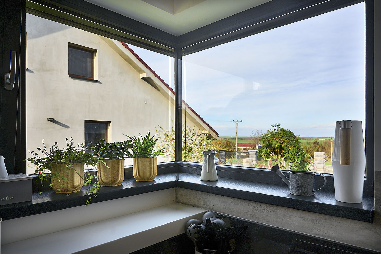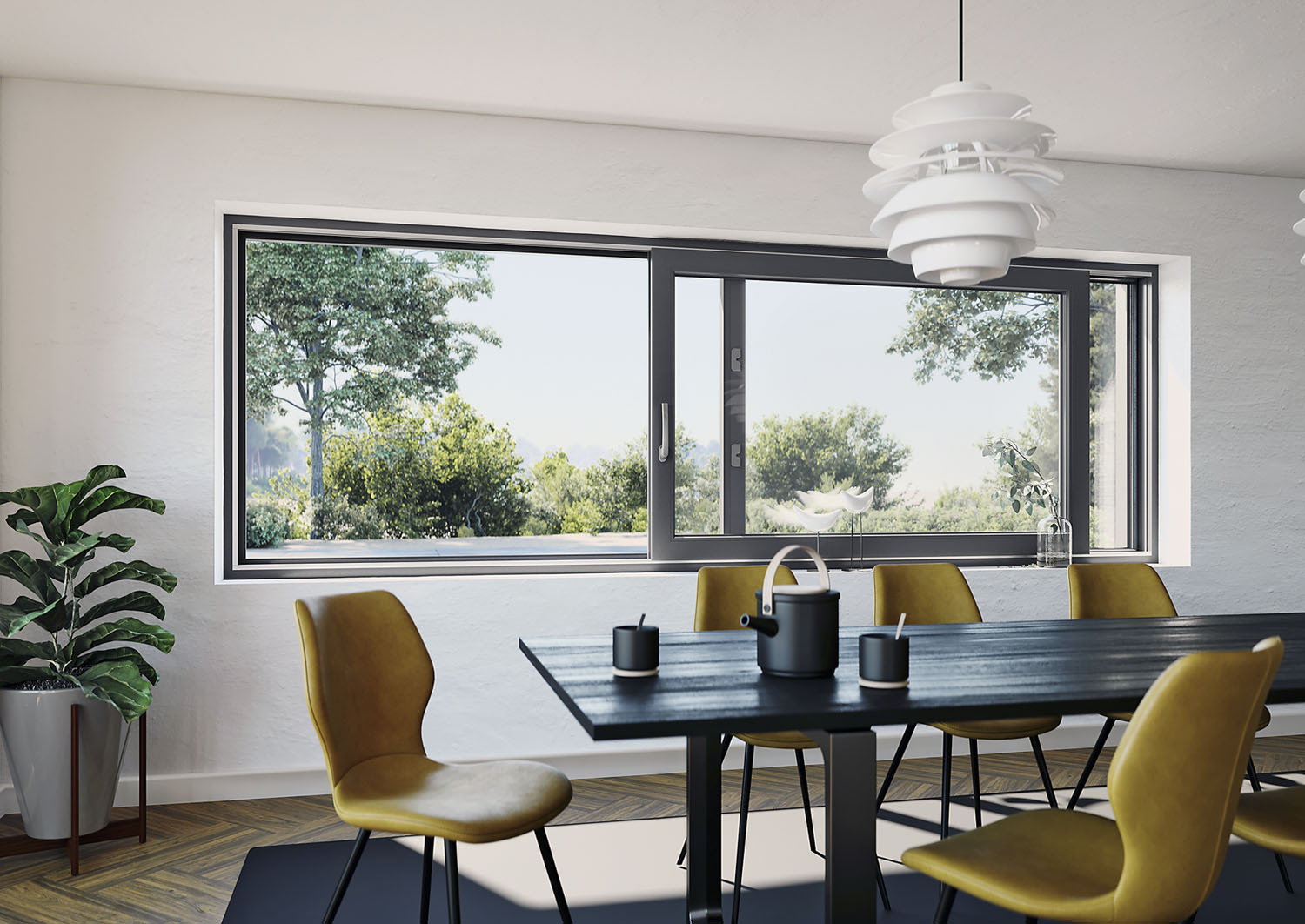 Hliníkové okná vykazujú zo všetkých materiálov najvyššiu odolnosť voči poveternosti, dlhú životnosť a nevyžadujú žiadnu údržbu. Okenné profily do bodky plnia súčasné požiadavky na výstavbu domov s takmer nulovou spotrebou energie. Rámy sa síce pri dnešných moderných oknách podieľajú na celkových tepelnotechnických parametroch len malou mierou, ale pri pasívnych domoch sa počíta doslova každý kW. Moderné profily sú opatrené vnútornými plastovými komponentmi a tesniacou výplňou z polyamidovej peny, ktorá bráni vzniku tepelných mostov a zaisťuje vynikajúce tepelnoizolačné vlastnosti. Koeficienty prestupu tepla oknom dosahujú (v závislosti od typu trojskiel) hodnoty 0,7 – 0,8 W/m2K. Ďalšou výhodou hliníkových profilov je veľká pevnosť a únosnosť, čo je pri výplniach s ťažkými izolačnými trojsklami veľmi dôležité – v porovnaní s ostatnými materiálmi umožňujú realizovať veľkoformátové presklené plochy bez deliacich stĺpikov. Zásadná je správna konštrukcia profilu. Napríklad okenné krídlo s profilom Heroal W 77 n môže dosiahnuť výšku až 2 800 mm a hmotnosť 300 kg. Sú ideálnou voľbou predovšetkým pre veľké posuvné plochy – tzv. HS portály.
