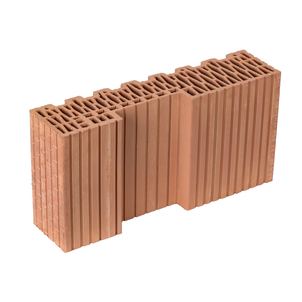 Rohová tehla efektívne začína a zakončuje roh – čo je dôležité pre udržanie previazania muriva, ktoré má zásadný vplyv na statiku konštrukcie aj tepelnú techniku.