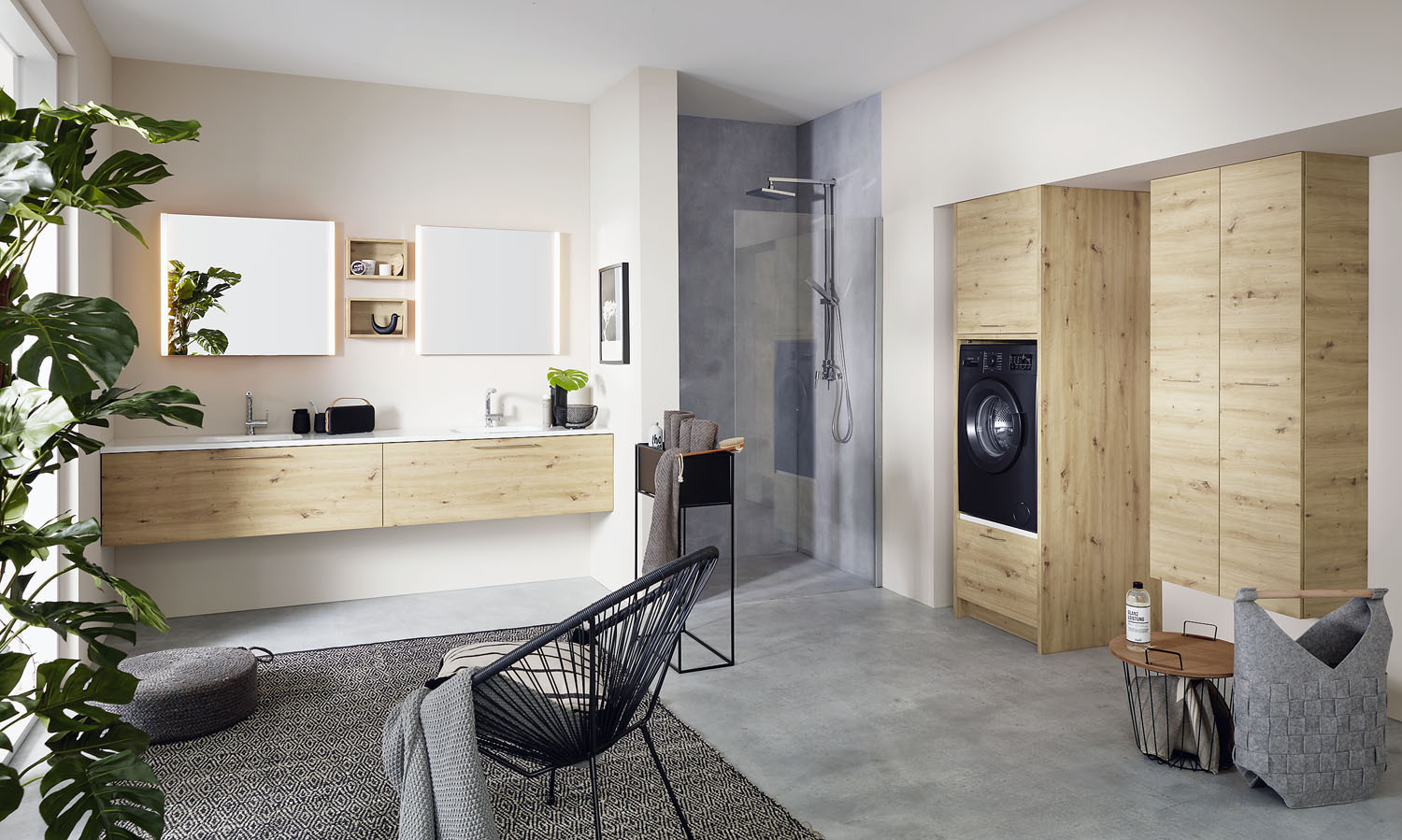 Samostatná miestnosť, v ktorej je dostatok miesta na práčku, sušičku, hlboké umývadlo, kôš na špinavú bielizeň aj koše na čisté veci, prípadne aj na sušiak a žehliacu dosku, priam volá po spojení funkčnosti s dizajnom. Veľký efekt urobia napríklad batérie. Bežný chróm je klasika, ktorá sa dá povýšiť na inú úroveň, ak sa použije farebná vodovodná batéria. Dôležitejší než dizajn batérie je však dizajn umývadla. Aj v práčovni môže byť štýlové, zároveň však praktické, čo znamená dostatočne hlboké na namáčanie bielizne a ručné pranie. Odkladacie priestory, poličky, skrinky či primerane veľký pult na skladanie vysušenej bielizne sú v dobrej práčovni nevyhnutnosťou. „Dobre navrhnutá a správne zorganizovaná práčovňa môže povinnosti spojené s triedením, nakladaním a vykladaním bielizne zásadne spríjemniť. Moderné nábytkové koncepty vyzerajú trendovo, pričom môžete kombinovať, čo chcete a potrebujete s ohľadom na dispozíciu a veľkosť priestoru,“ uvádza L. Jelen. Upozorňuje však, že celkovým štýlom a atmosférou by sa práčovňa nemala zásadne odlišovať od zvyšku obytného priestoru. „Náš nábytok je možné ľahko prispôsobiť celému domu. Dokážeme vytvoriť rôzne nábytkové koncepcie, nástenné police, otvorené poličky, priemyselné dizajnové prvky, zrkadlá, vstavané LED svietidlá alebo ponúknuť nápady na riadenie káblov. Okrem vysokej kvality máme bohatú paletu farieb, tvarov a možností úprav pre každého.“