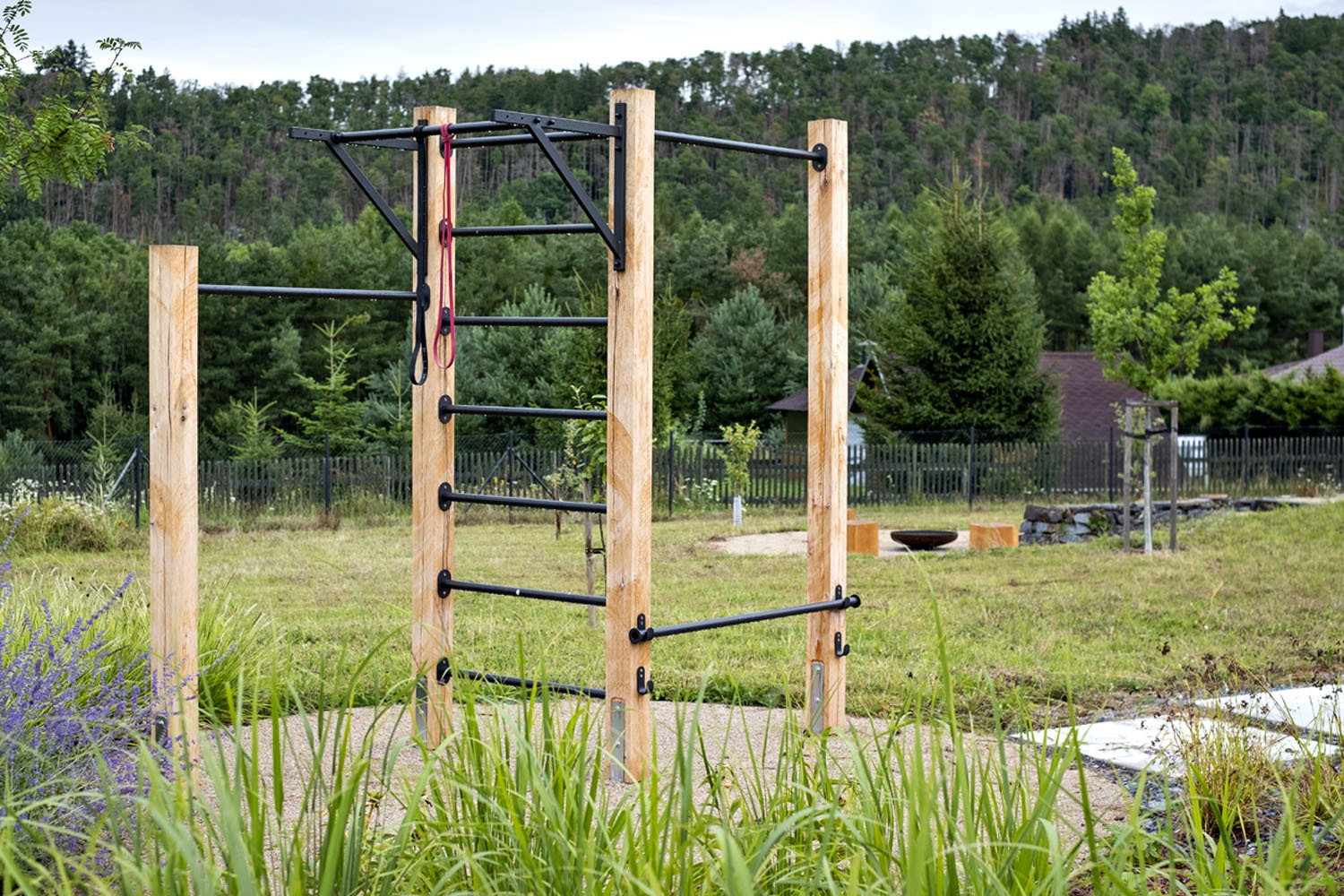 Záhrada je, rovnako ako dom, určená pre mladý, športovo založený pár. Dom mal pôvodne slúžiť len na víkendovú rekreáciu, ale vplyvom pandémie sa z domu stalo trvalé bývanie.