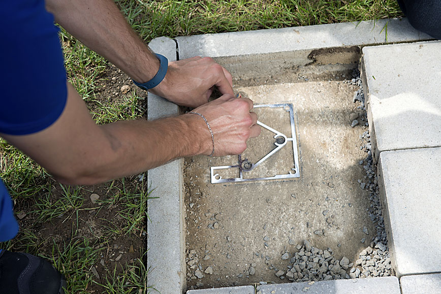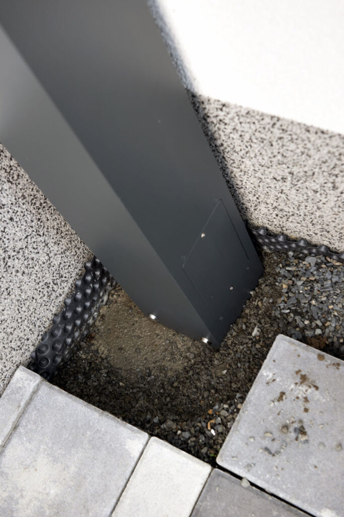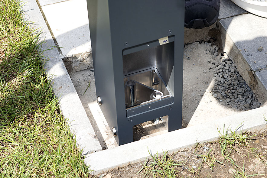 12. Montážny otvor sa zakryje krytom. Po montáži sa skontroluje funkčnosť naklápania lamiel a LED osvetlenia, upraví dlažba okolo stojok a je hotovo