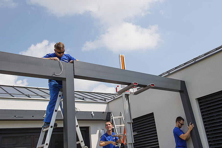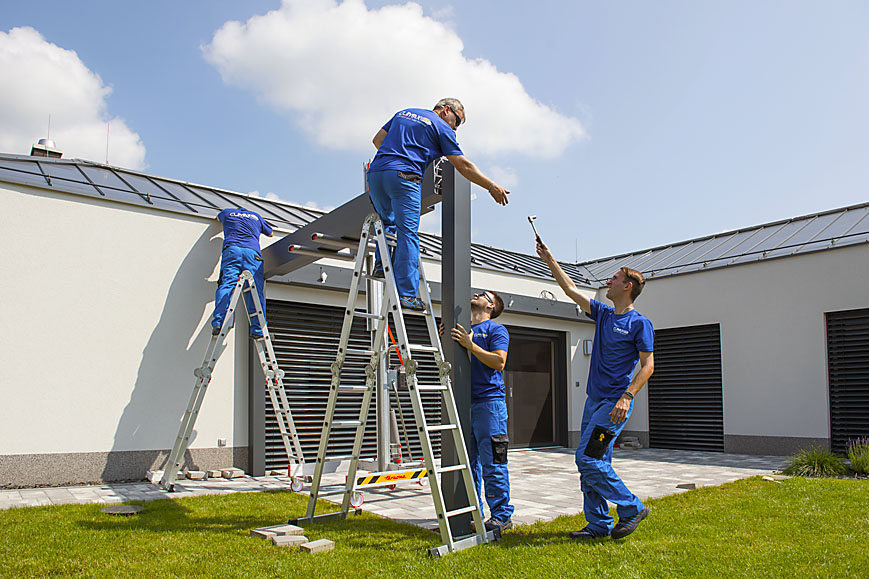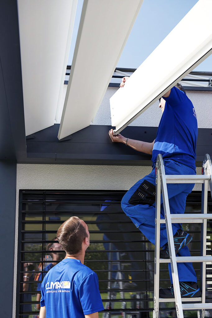 Klimatickú pergolu si rozhodne nemontujte sami, vždy to pre vás urobí špecializovaná firma. Ale je dobré vedieť, čo vás čaká a ako bude inštalácia prebiehať. Na ukážku sme vybrali realizáciu spoločnosti Climax. Poďme sa spoločne pozrieť, ako prebieha montáž lamelovej pergoly Espacio.