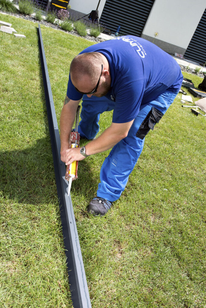 4. Najprv sa kotví hliníková konštrukcia do obvodovej steny. Aby sa montáž stihla počas dňa, je ideálna spolupráca štyroch technikov