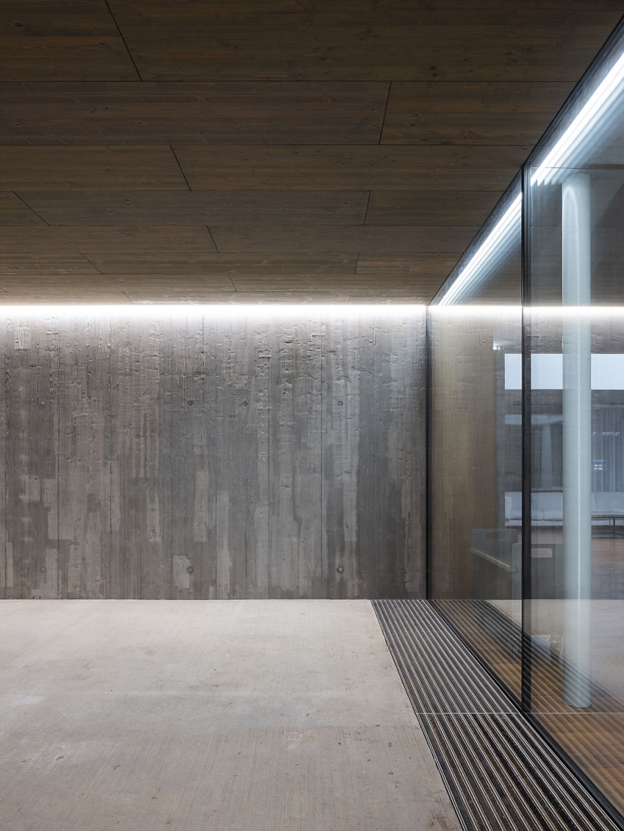 - Konštrukcia: železobetónové základové pásy a základová doska, železobetónová monolitická konštrukcia + oceľové stĺpy, stropy železobetónová monolitická doska, zvýšený strop – oceľová priehradová konštrukcia, obvodové steny sendvičové – medzi betónové steny vložená tepelná izolácia z fenolovej peny, povrchy stien – pohľadový betón, v streche izolačné dosky PIR a striekaná polyuretánová pena (v oceľovej konštrukcii), fasádny vetraný drevený obklad, v interiéri pohľadový betón, drevený obklad a hladké omietky
