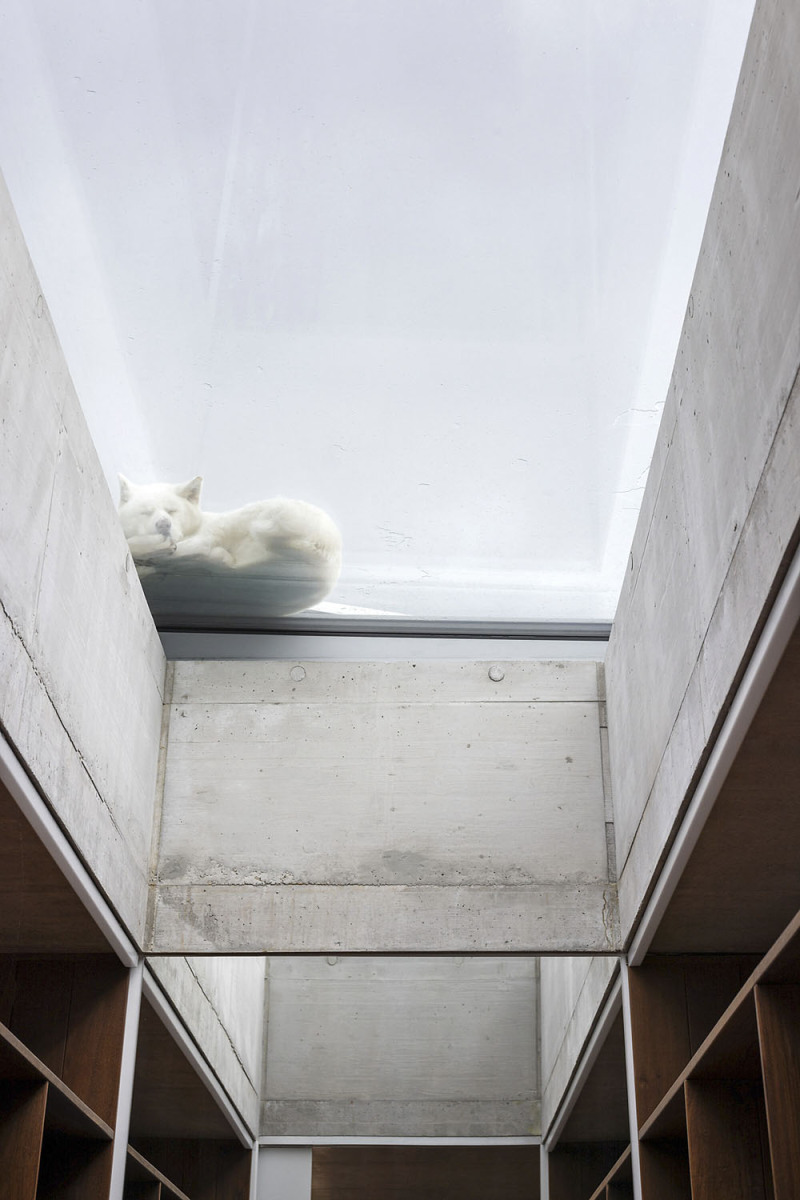 Lokalita zvaná Suchý vrch leží na kopci nad Banskou Bystricou na úpätí Kremnických vrchov. Majitelia domu aj architekti dokonale pochopili jedinečný a nenahraditeľný potenciál tohto miesta – krásna príroda v okolí a výhľady na mesto, borovicové lesy priamo za plotom a na obzore silueta hrebeňov Veľkej Fatry a Nízkych Tatier. Táto jedinečná konfigurácia si vyžiadala špeciálny prístup. „Zadaním bol jednopodlažný dom v maximálnom kontakte so záhradou, výhľady na les zo všetkých obytných miestností, zachovanie súkromia,“ uvádza architekt Martin Paulíny, spoluautor návrhu. „Klienti si priali dobre presvetlený, ale aj účinne tienený interiér prepojený s obytnou terasou. Po praktickej stránke odolný dom s minimálnymi nárokmi na údržbu. Od tejto požiadavky sa odvíjala skladba materiálov – jednoduchá, surová, bez vrstvených povrchov a zložitých detailov.“ Základom je monolitická betónová sendvičová konštrukcia s nosnou železobetónovou časťou, vloženou tepelnou izoláciou z fenolovej peny a pohľadovým betónom na povrchu. Konštrukcia zvýšenej strechy a vnútorné stĺpiky sú z ocele, trojuholník elementárnych materiálov dopĺňa prírodné drevo na podlahách, interiérových a exteriérových obkladoch, dverách a oknách.