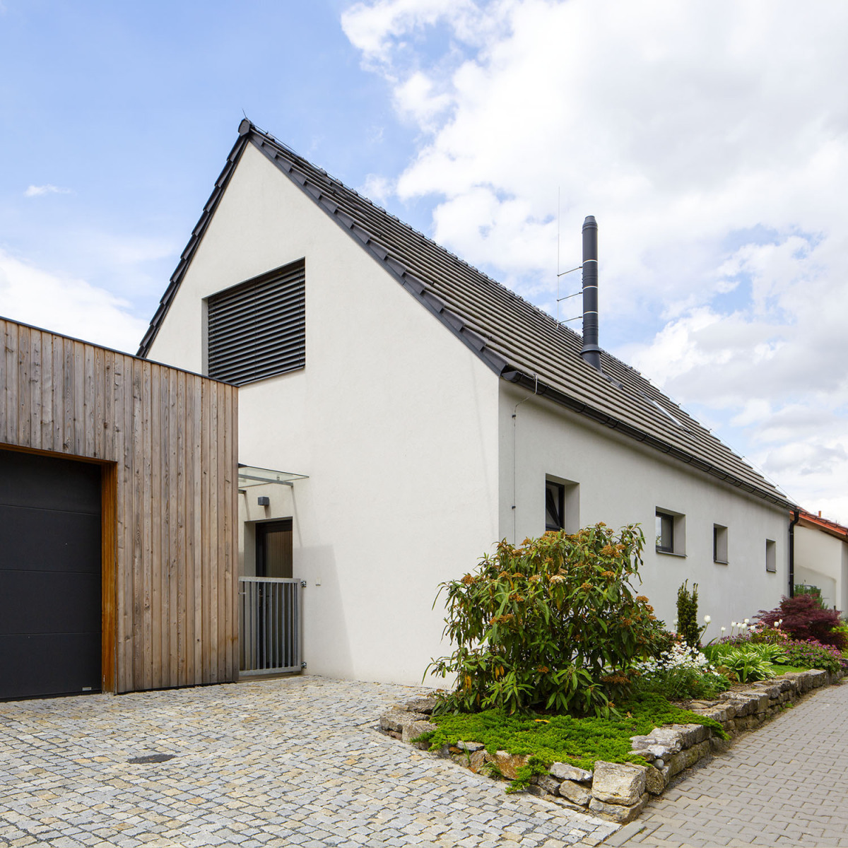 Novostavba vznikla na parcele, ktorá sa nachádza na okraji mesta, stretávajú sa tu radové domy s vilkami v záhradách. Pôvodne tu bola stavba z nepálených tehál, predtým obľúbeného stavebného materiálu. Nachádzala sa v zlom technickom stave, nahradil ju teda dom nový. „Klienti si nás vyhľadali na základe našich referencií, a čoskoro sa ukázalo, že spolupráca s nimi bude harmonická až k dokonalosti – preferovali jednoduché a prehľadné dispozície, veľmi im záležalo na tom, aby sa miestnosti otvárali do záhrady. V tomto prípade stačil prvý návrh, nebolo treba dlho diskutovať nad rôznymi variantmi. V podstate sme zachovali proporcie aj výšku pôvodnej stavby. Architektúra bola vo veľkej miere inšpirovaná tradičnými formami, rešpektuje tak kontext lokality,“ uvádza architekt Jan Tesař.