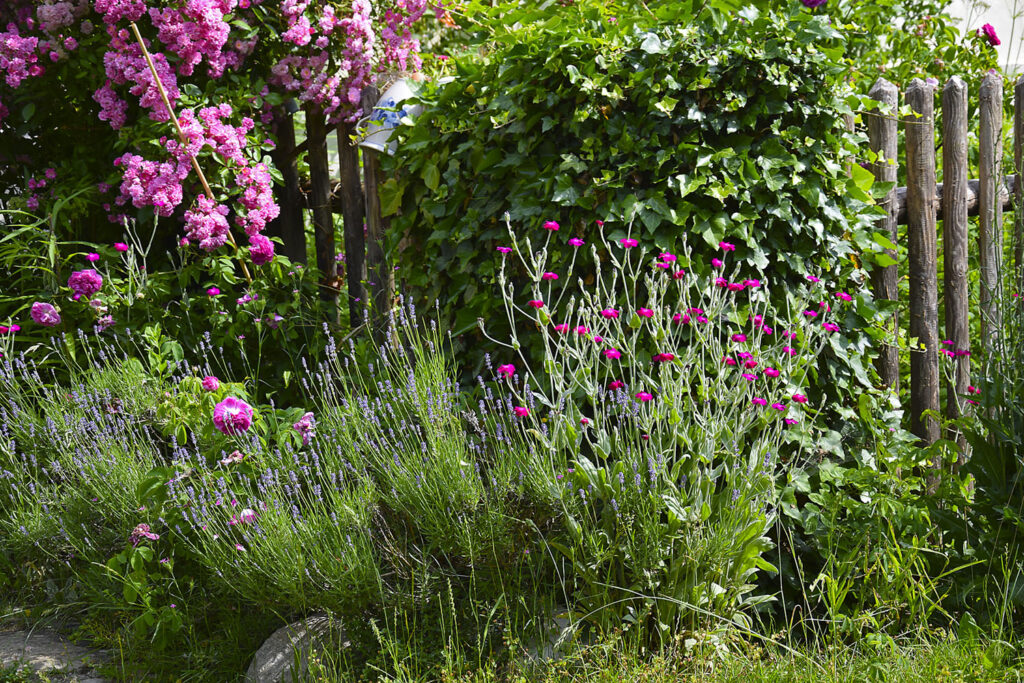 Medzi stálice vidieckych záhrad sa počítajú hlavne hybridné veľkokveté plamienky (Clematis). Zaujímavo sa na záhonoch dopĺňajú s popínavými alebo kríkovými ružami. Pokiaľ im dodáte prútenú alebo kovanú oporu, postarajú sa o zaujímavú dominantu každého kvetinového záhonu. Dobre porastú dokonca aj vo väčších nádobách. Stále nedocenenou popínavkou s vínovo červenými kvetmi je akébia päťpočetná (Akebia quinata). Hoci to rozhodne nie je žiadny trpaslík, postará sa o zaujímavý zážitok v každej kvetinovej záhrade. Vysaďte ju ale radšej k pevnej opore, ktorá unesie výhony dlhšie ako sedem metrov. Zo záplavy kvetov na jeseň vzniknú dekoratívne fialové plody.