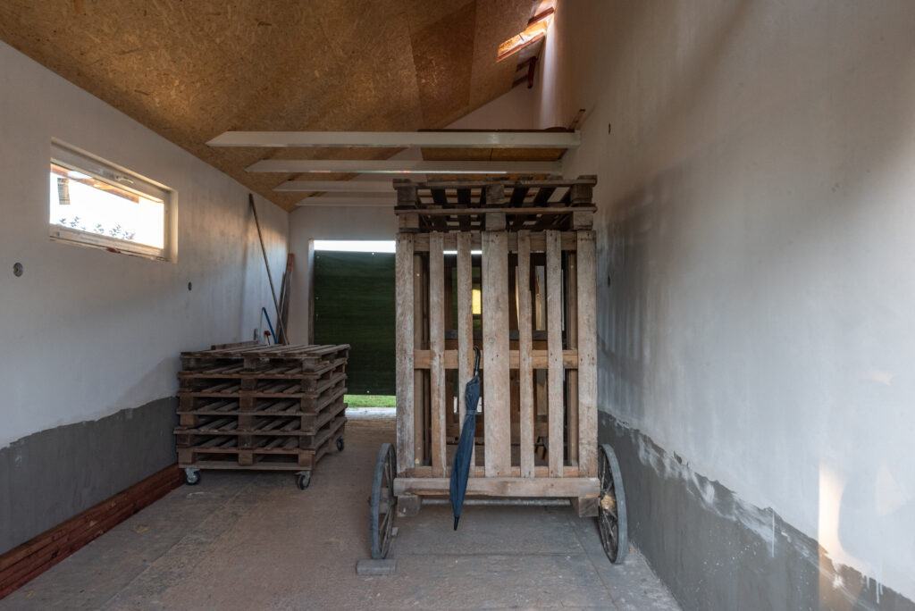 Perfektné vyrezanie je skvelým potvrdením toho, že príbeh o tehle, ktorá sa rozpadla na kúsky pri drážkovaní, je skutočne mýtus. V súčasnej dobe Vladimír dokončuje povrchy v garáži, na to využíva špeciálne vytvorené pojazdné lešenie, vďaka ktorému môže pracovať aj vo výškach. Cez zimu má potom v pláne práce v interiéri.