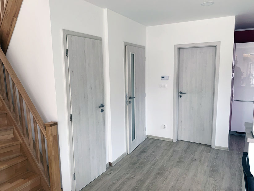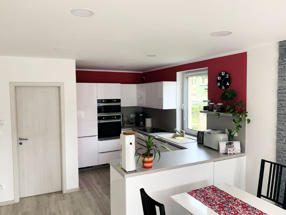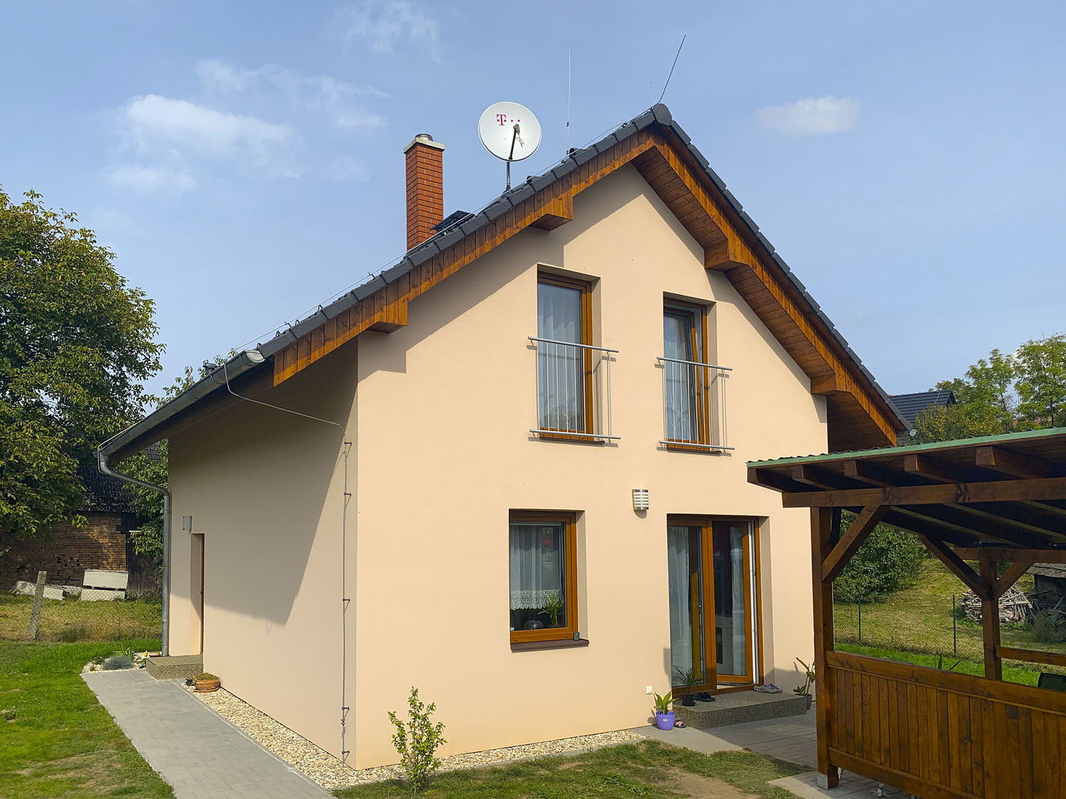 Na začiatku sme uvažovali o drevostavbe, ale kvôli negatívnej skúsenosti našich priateľov sme zvolili murovaný dom. Výber domu, samozrejme, ovplyvnili naše finančné možnosti. Keďže nám z dôvodu vyššieho veku neschválili požadovanú hypotéku, rozhodli sme sa pre menší dom s dispozíciou 4 + kk. Katalógový projekt domu upravili podľa našich individuálnych potrieb tak, aby spĺňal špecifiká pozemku. Náš pozemok bol totiž úzky a museli sme dodržať požadovaný odstup od potoka,