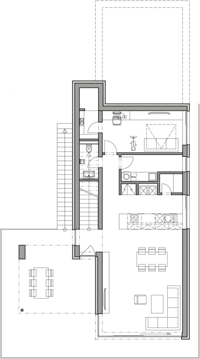 Krátke a priame komunikačné línie – zaistia, že čo najlepšie využijete zastavanú plochu, bez dlhých alebo členitých chodieb, a v dome sa zbytočne nenabeháte. Tento ideál možno dosiahnuť, ak má dispozícia jednoduchý tvar, je správne rozdelená na funkčné zóny a všetko na seba logicky nadväzuje (šatňa je pri vstupe do domu, WC vedľa spoločnej obývacej časti, ďalšia toaleta a kúpeľňa pri spálňach…). Funkčné zóny, logické nadväznosti a komunikačné línie sú teda predpokladom pohodlného bývania.