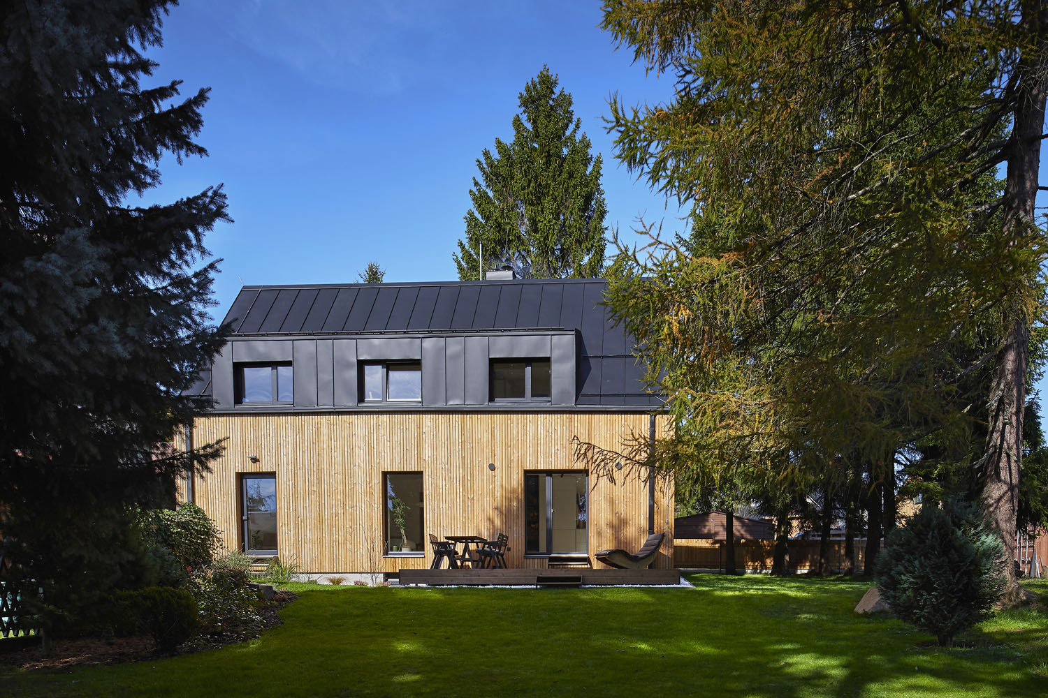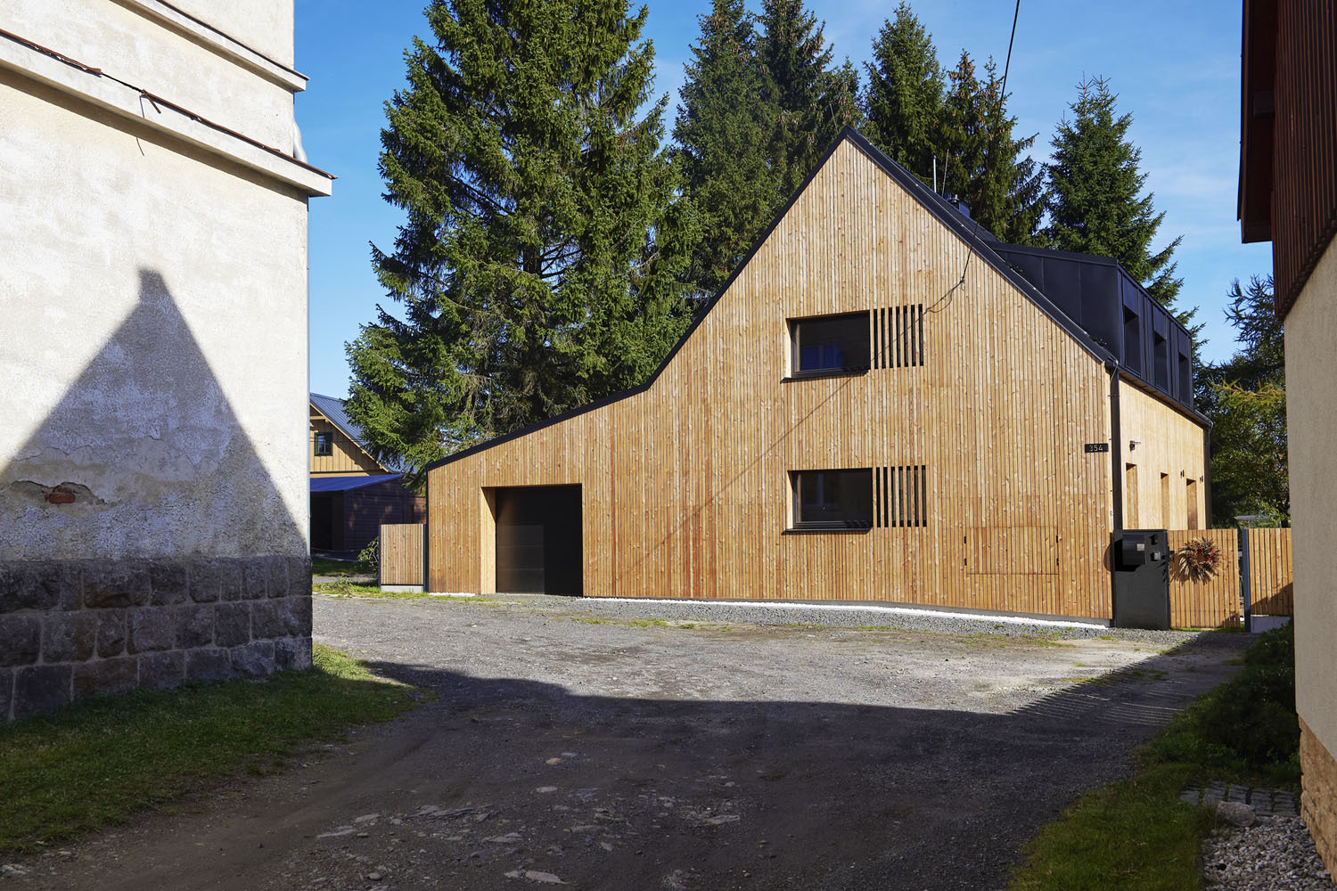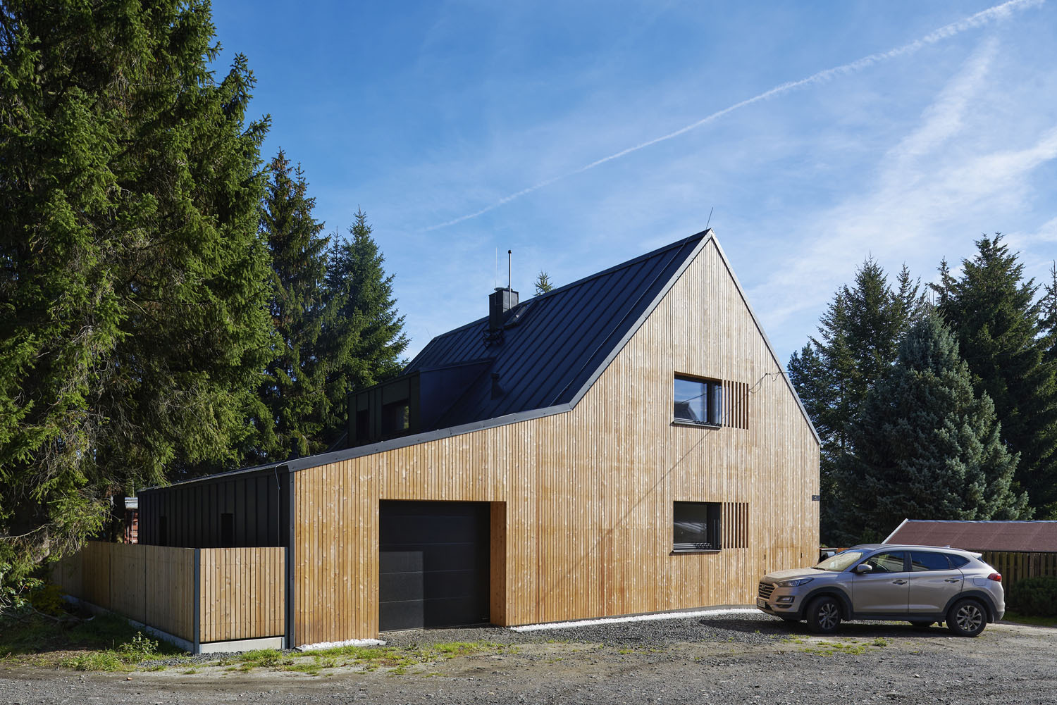 Historický dom pochádzajúci z druhej polovice 19. storočia stojí na peknom pokojnom mieste obklopenom vysokými ihličnatými stromami. Záhrada je orientovaná na juh, prístup na pozemok vedie zo západnej strany. Počas storočí bol domček niekoľkokrát upravovaný a rozširovaný o nevhodné prístavby, ktoré degradovali jeho hmotu a vzhľad. K murovanej časti boli zo západnej a severnej strany pripojené dva drevené prístavky, ktoré obsahovali vstup, zasklenú verandu, garáž a ďalšie pomocné priestory. Pôvodné drevené okná boli nahradené novými „panelákovými“, úplne v nesúlade s charakterom domu. Po statickej stránke bola stavba murovaná z plných tehál síce v poriadku, ale dispozícia ani vzhľad nezodpovedali súčasnému štandardu bývania pre rodinu s tromi deťmi. Majitelia sa teda rozhodli pre radikálnu rekonštrukciu spojenú s rozšírením obytného priestoru. „Hlavnou úlohou rekonštrukcie bolo dom očistiť na pôvodný stav a vhodne doplniť o novú prístavbu. Nová hmota je kompaktná, zastrešená sedlovou strechou doplnenou vodorovným vikierom, ktorá prechádza do pultovej nad nebytovými priestormi,“ hovorí architektka Eva Řezáčová, spoluautorka návrhu stavby.