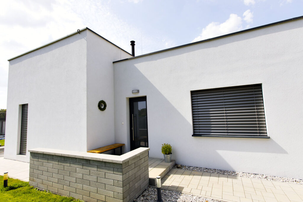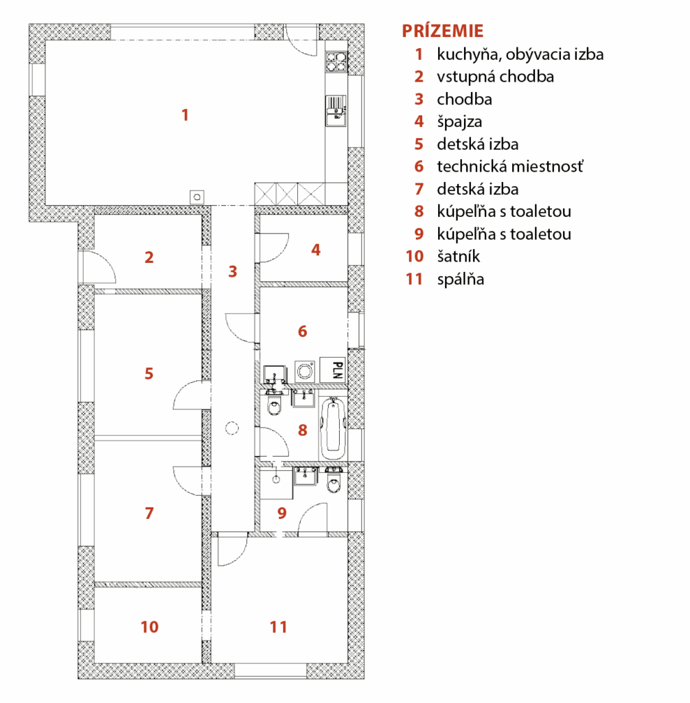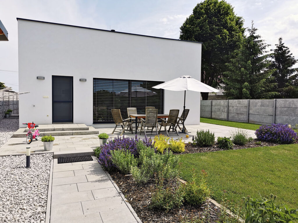 - Výplne otvorov: plastové okná a dvere s trojsklom, zatienené vonkajšími žalúziami