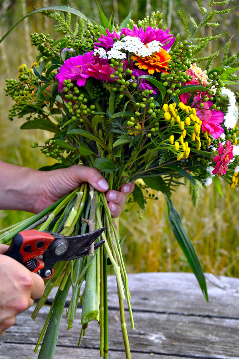 Na plochu okolo desiatich metrov štvorcových môžete vysadiť okolo pätnásť kusov mečíkov, ktoré sa skvele hodia do vysokých kytíc alebo len tak do vázy. Kvetov od júna do októbra sa dočkáte pri cíniách a niekedy aj papuľkách. Na tých určite nešetrite, oplatia sa aj v niekoľkých kultivaroch. Potom sa tu nájde miesto pre šesť stredne veľkých odrôd georgín a niekoľko slnečníc. Ku konštrukcii z vŕbových prútikov vysajte voňavé hrachory, len ich kvety zberajte naozaj pravidelne. Akonáhle sa vytvorí prvý struk so semienkami, hrachory sa vysilia a prestávajú tvoriť puky.