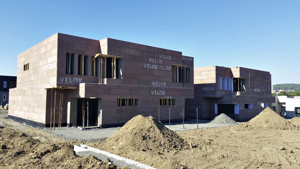 Pri systéme VELOX sa steny a stropy betónujú do debnenia zo štiepkocementových dosiek, ktoré sa po vytvrdnutí betónu stávajú trvalou súčasťou zvislých aj vodorovných konštrukcií (HOFFMANN)